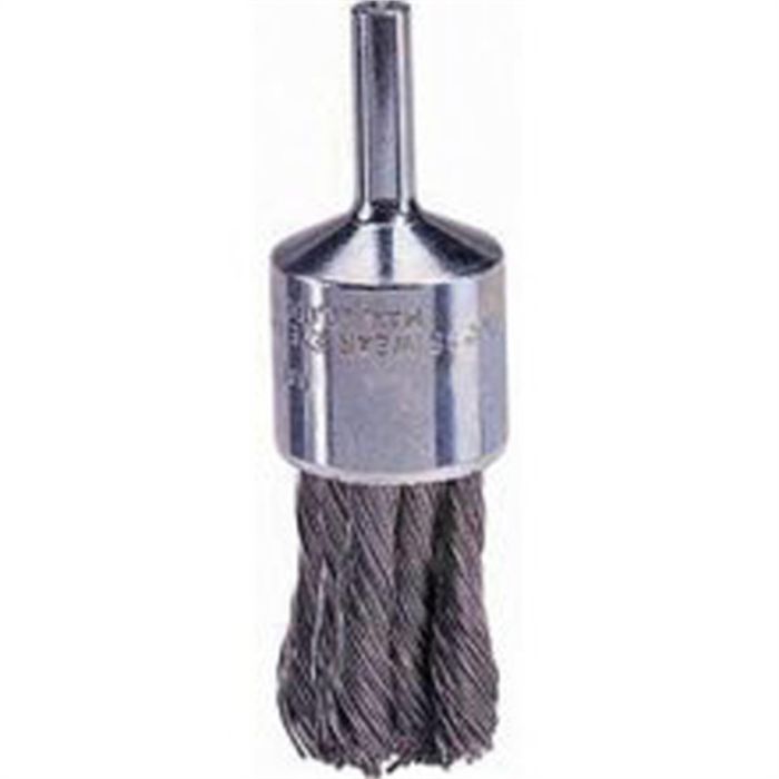 Wire End Brush, 1-1/8" Diameter, .006 Knotted Wire, 1/4" Round Stem, 20,000 RPM Max